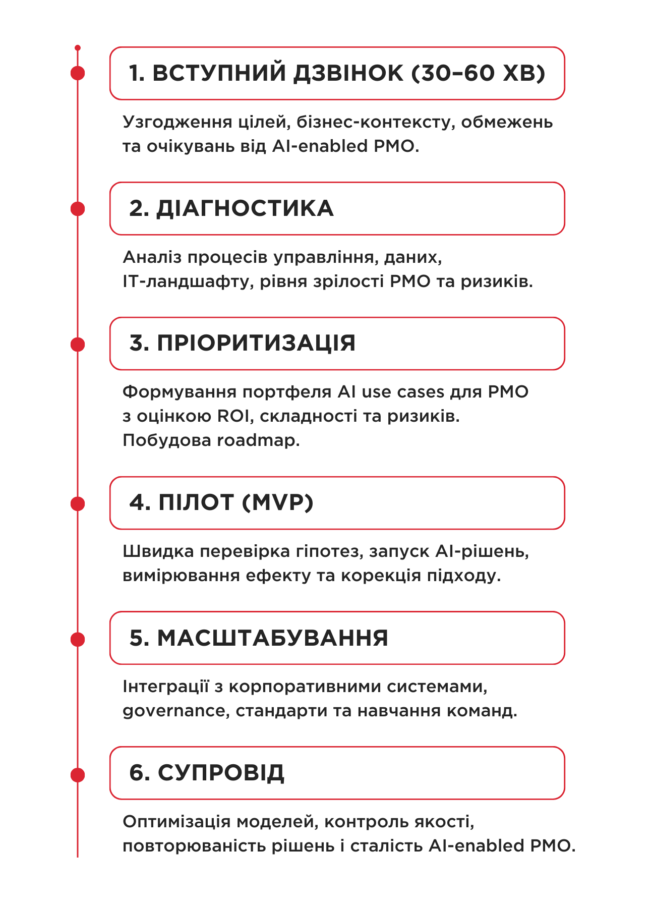 до запуску MVP, масштабування рішень і досягнення вимірюваного бізнес-ефекту.